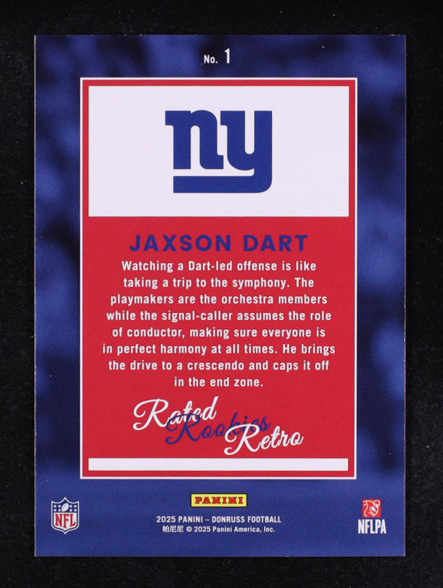 Jaxson Dart 2025 Panini Donruss Rated Rookie Retro #1 RC