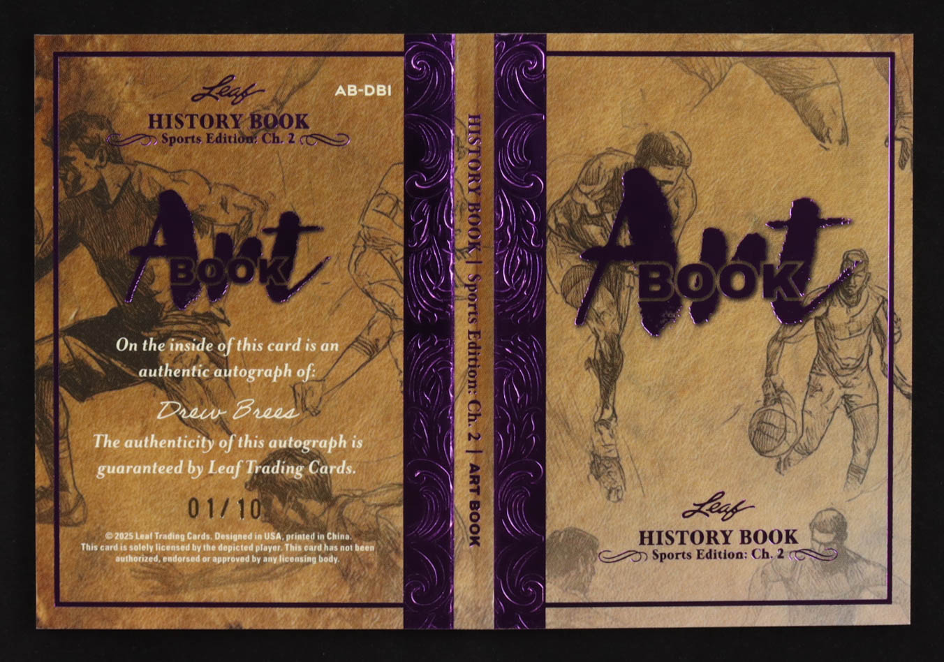 Drew Brees 2025 Leaf History Book Sports Edition Chapter 2 Art Book Purple #ABDB1 #01/10