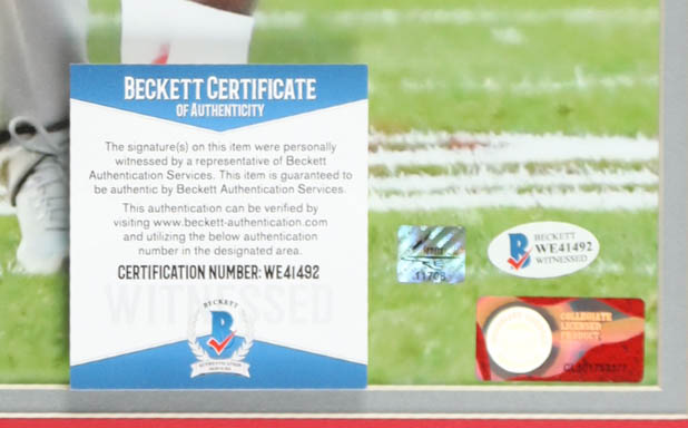 The autograph includes an official Beckett Authentication Services serially-numbered hologram and matching COA for authenticity purposes. The signing of this item was witnessed by Beckett.