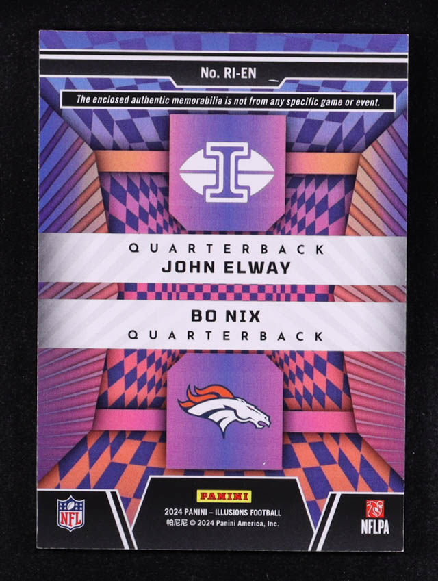 Bo Nix RC / John Elway 2024 Panini Illusions Rookie Idols Dual Memorabilia Blue #5 #15/99