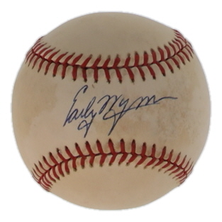 Rawlings Official American League Baseball. Hand-signed by Early Wynn (D. 1999, Cleveland Indians, HOF). Please note, the baseball is naturally toned and stained.