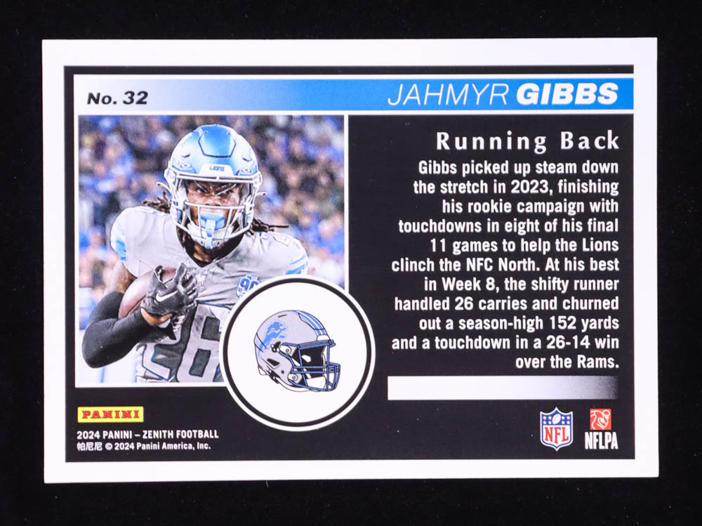 Jahmyr Gibbs 2024 Panini Zenith White Red Zone #32 #1/1