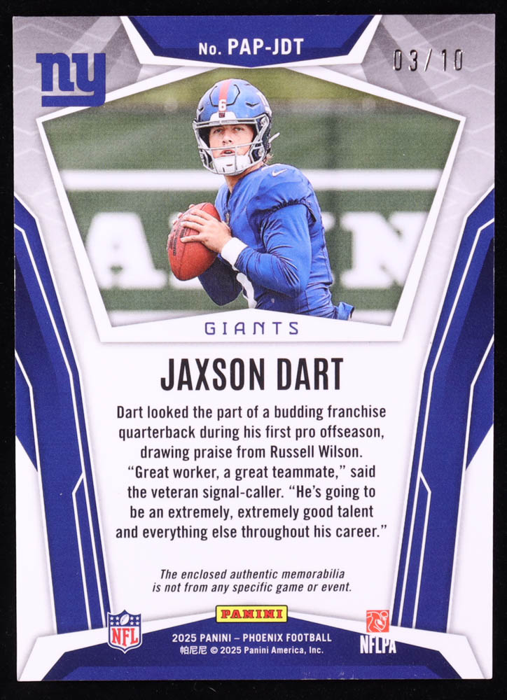 Jaxson Dart 2025 Panini Phoenix Pandora Patches Gold #16 RC #3/10