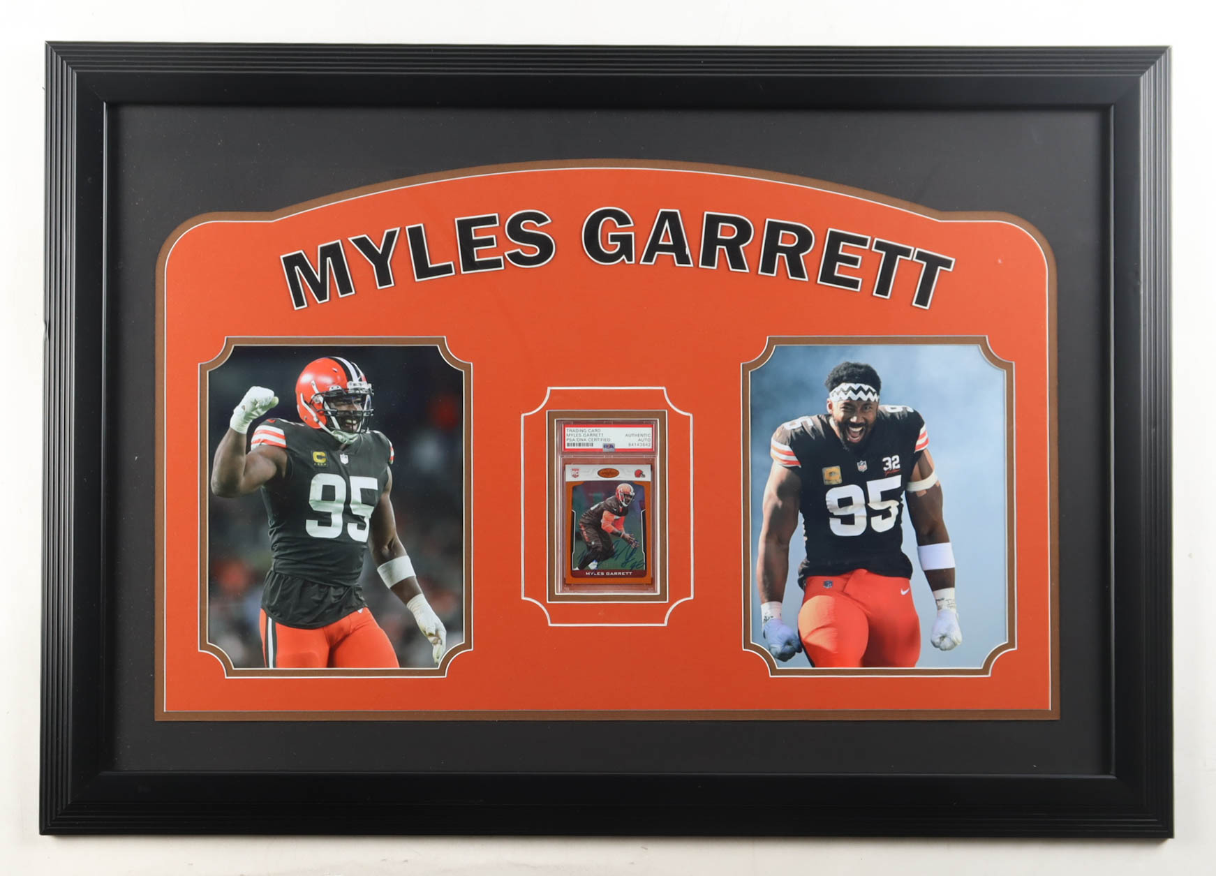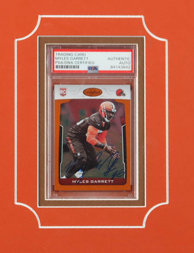 Myles Garrett Signed Browns Custom Framed 2017 Panini Certified Orange #90/199 #136 RC Display (PSA)