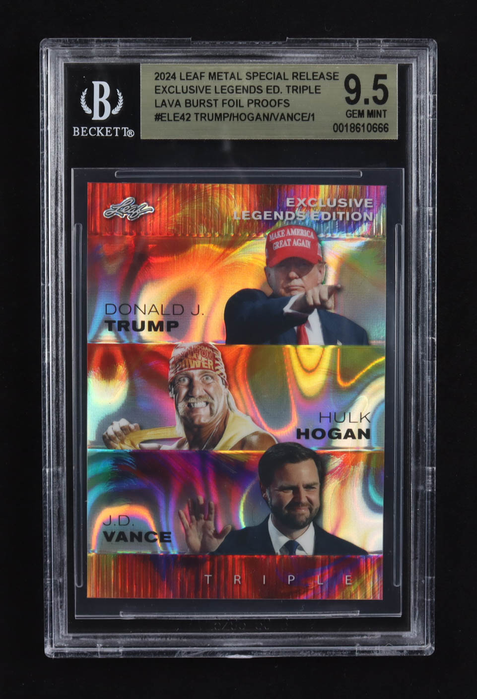 J.D. Vance / Donald J. Trump / Hulk Hogan 2024 Leaf Metal Special Release Exclusive Legends Ed. Triple Lava Burst Foil Proofs #ELE42 (BGS 9.5)