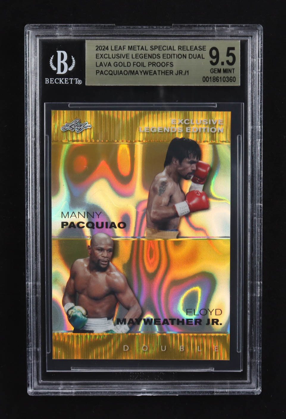 Manny Pacquiao / Floyd Mayweather Jr. 2024 Leaf Metal Special Release Exclusive Legends Ed. Dual Lava Gold Foil Proofs (BGS 9.5)