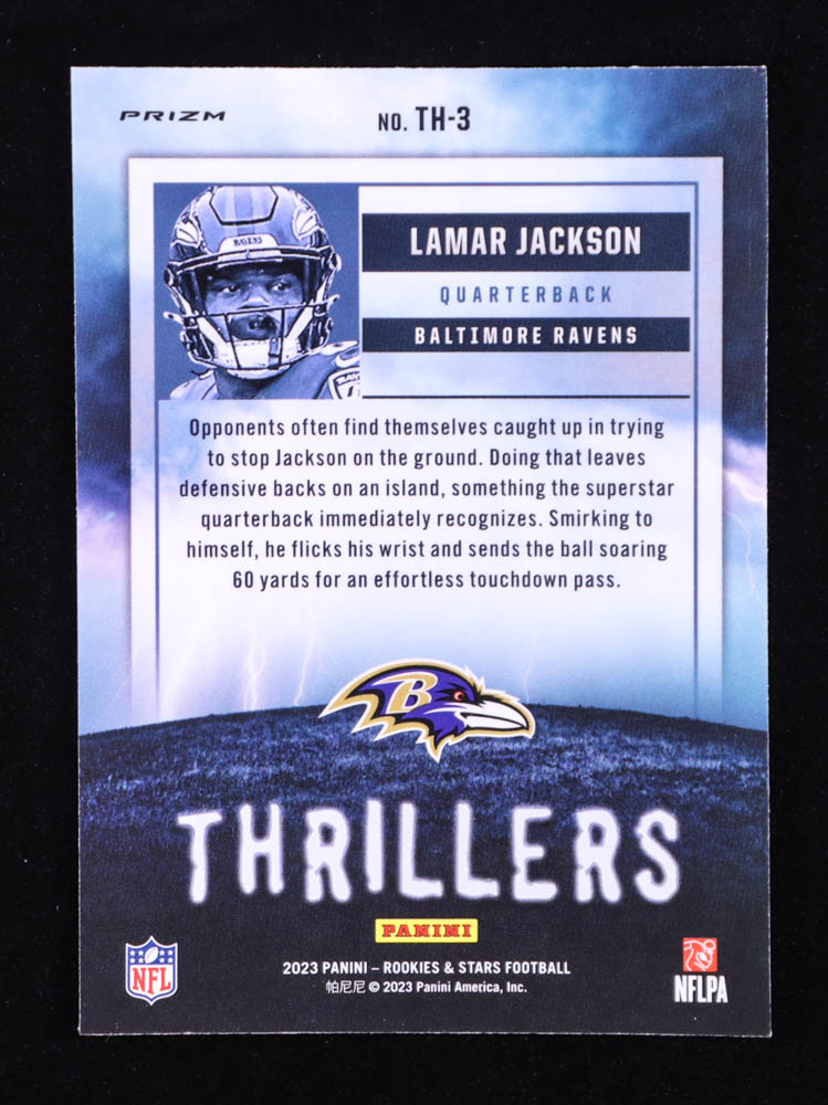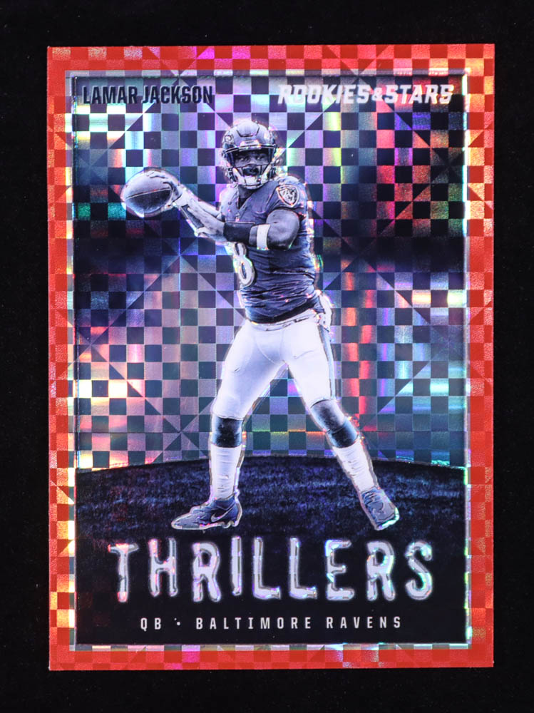 Lamar Jackson 2023 Panini Rookies & Stars Thrillers Silver Red Plaid #TH-3