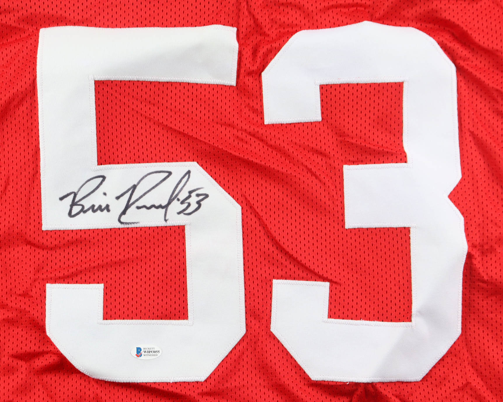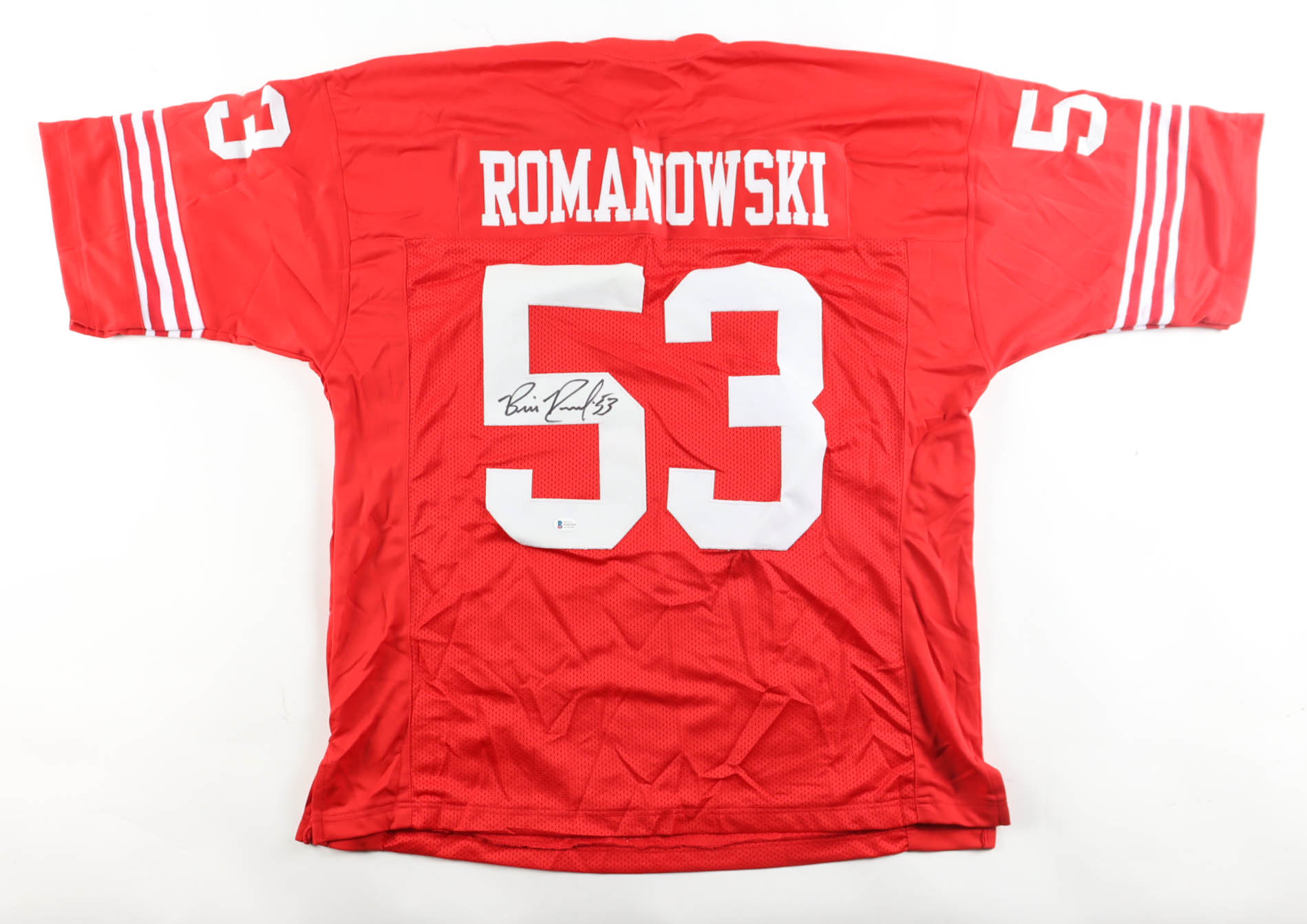 Custom jersey with everything sewn on, size XL. Hand-signed by Bill Romanowski.