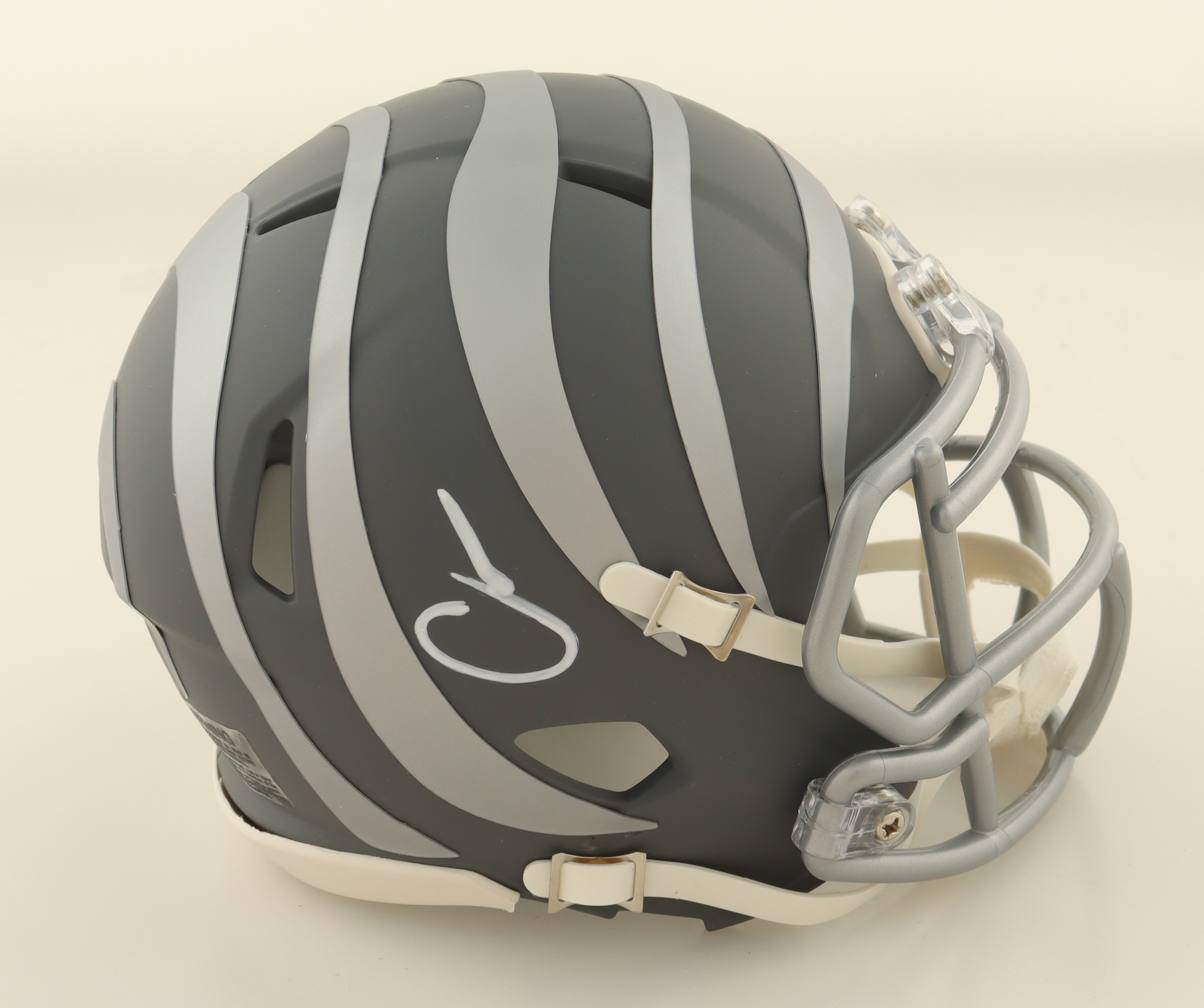Riddell Cincinnati Bengals Slate Alternate Speed Mini Helmet. Hand-signed by Chad 'Ochocinco' Johnson.