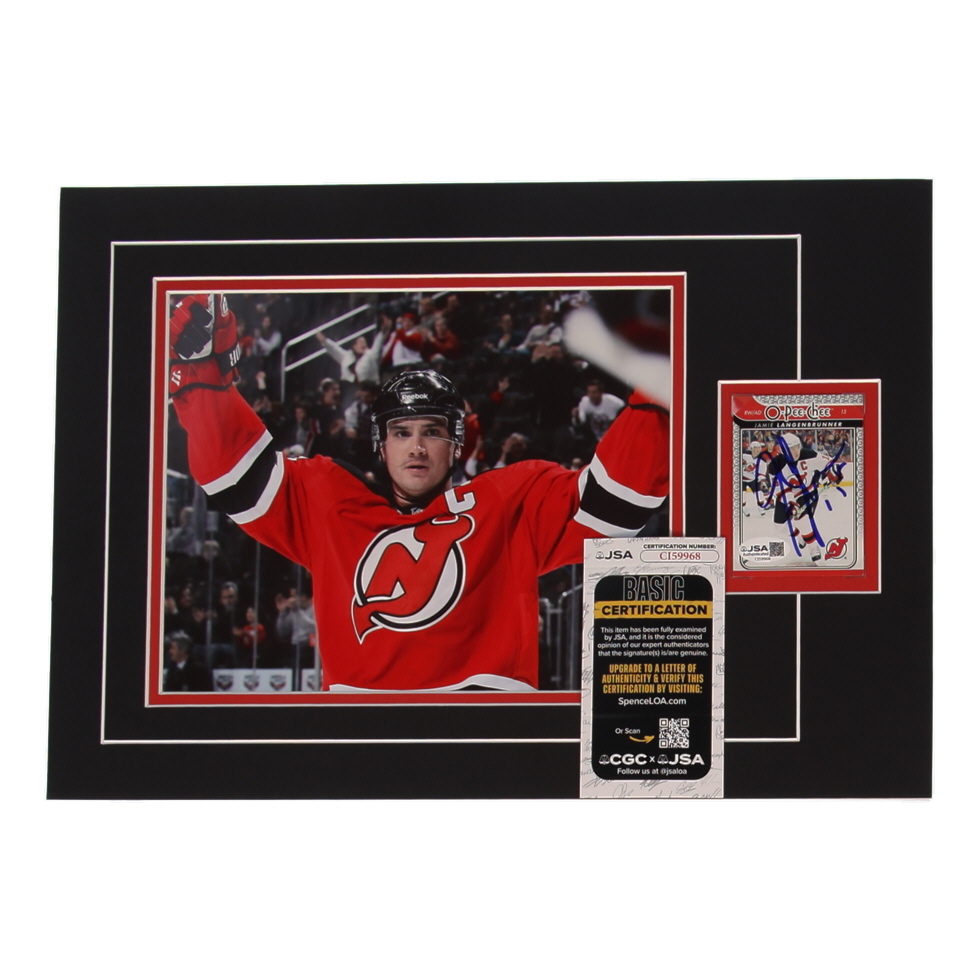 Jamie Langenbrunner Signed 12x17 Custom Matted Sports Card Display with Photo (JSA)