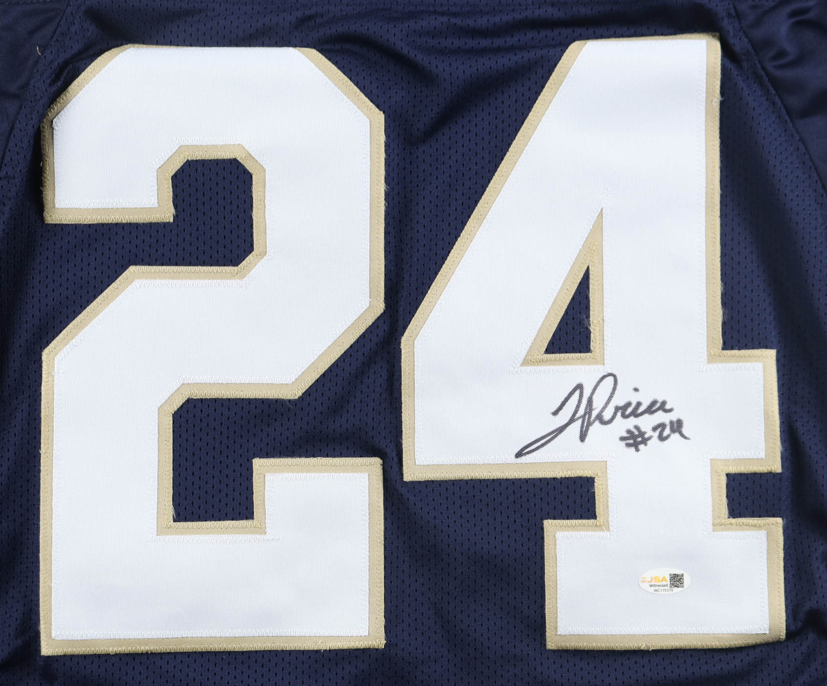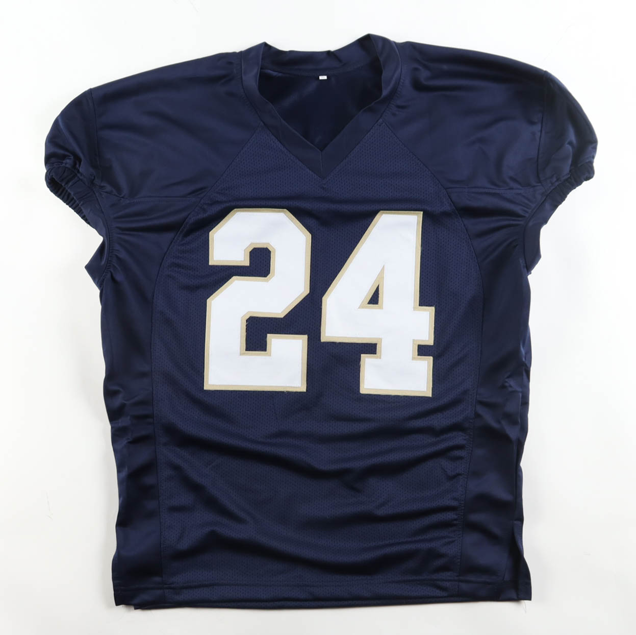 Custom jersey with everything sewn on, size XL. Hand-signed by Jadarian Price. Please note, the signature has bled.
