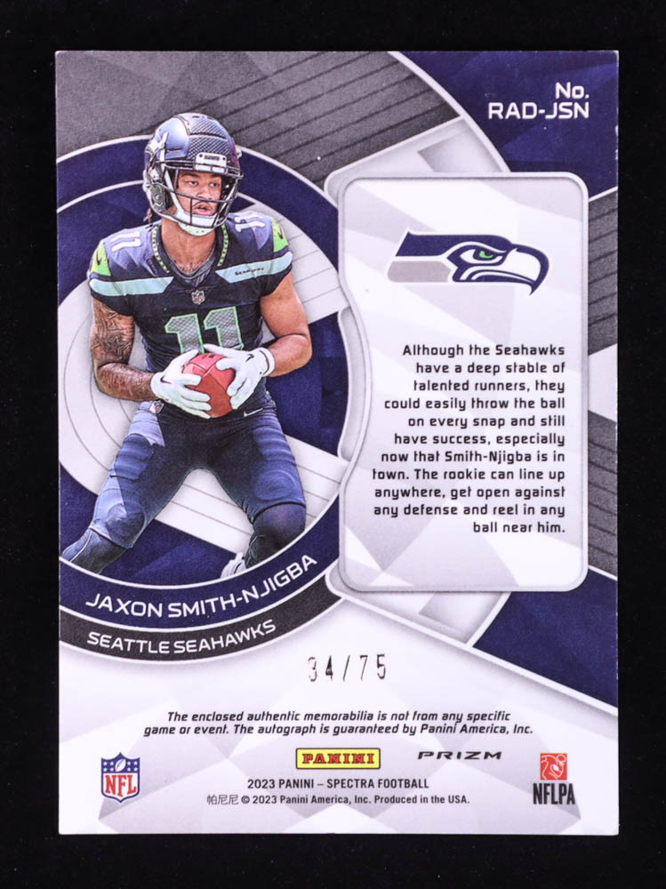 Jaxon Smith-Njigba 2023 Panini Spectra Radiant Rookie Patch Signatures Celestial #13 #34/75 RC