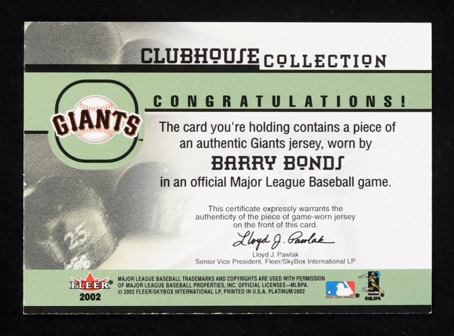 Barry Bonds 2002 Fleer Platinum Clubhouse Memorabilia Jsy #5