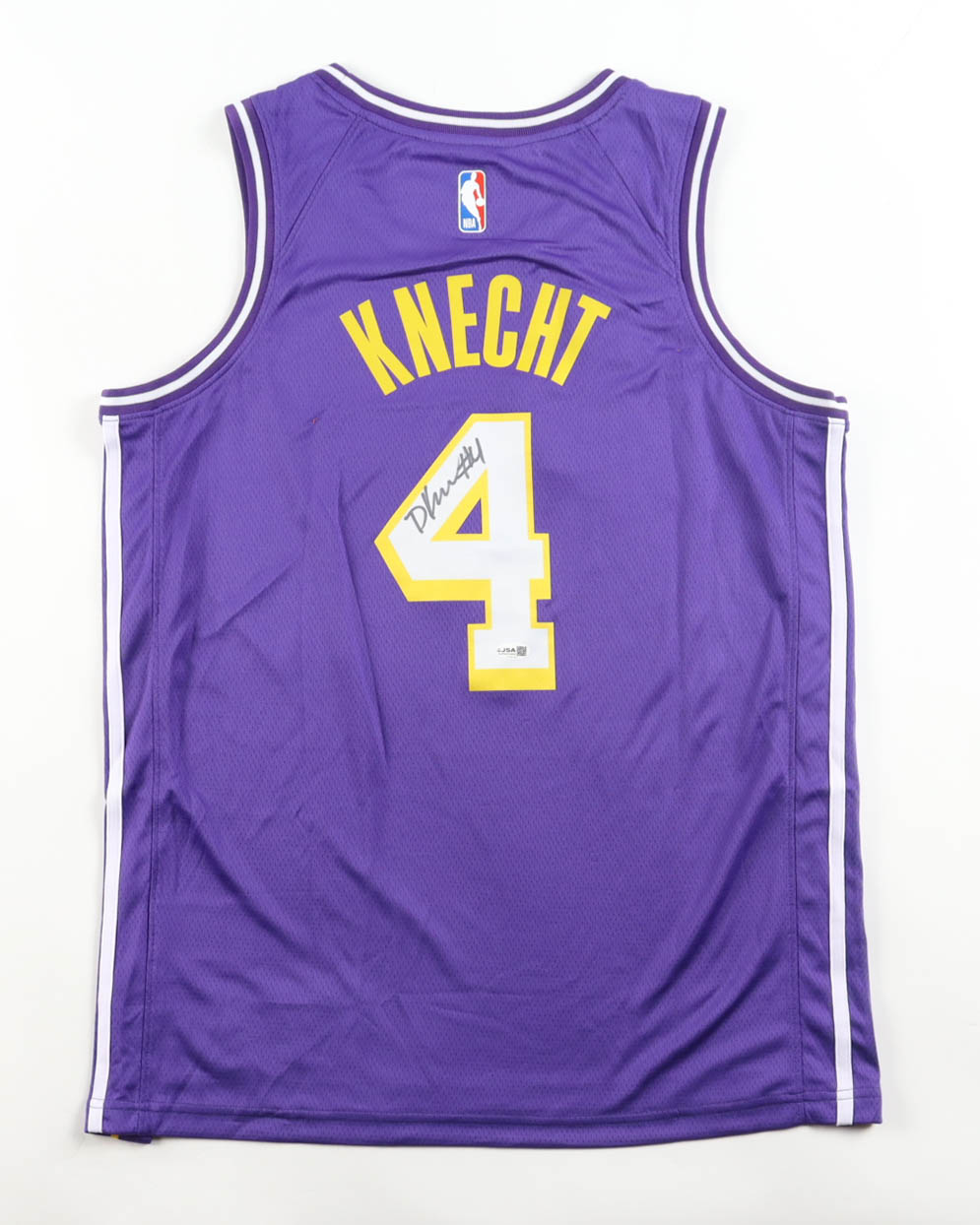 Jordan authentic jersey with everything pressed on, size 48. Hand-signed by Dalton Knecht (Los Angeles Lakers).