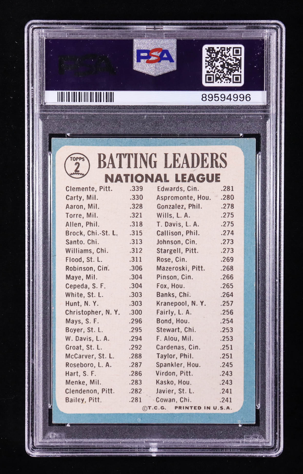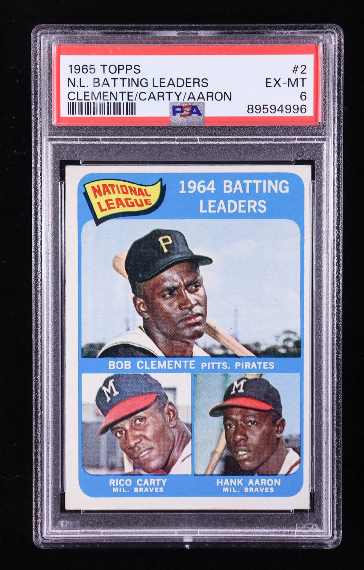 Roberto Clemente / Rico Carty / Hank Aaron 1965 Topps #2 NL Batting Leaders (PSA 6)
