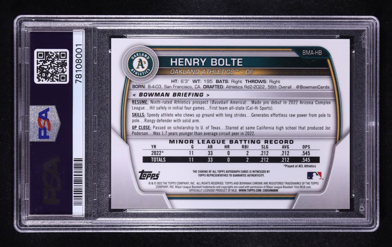 Henry Bolte 2023 Bowman Chrome Mega Box Prospect Autographs #BMAHB RC (PSA 10)
