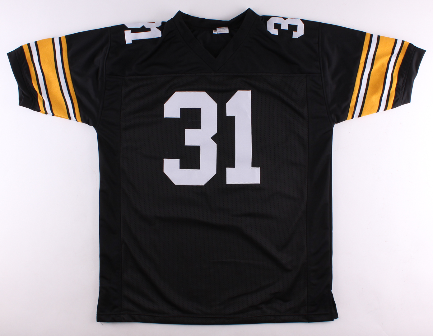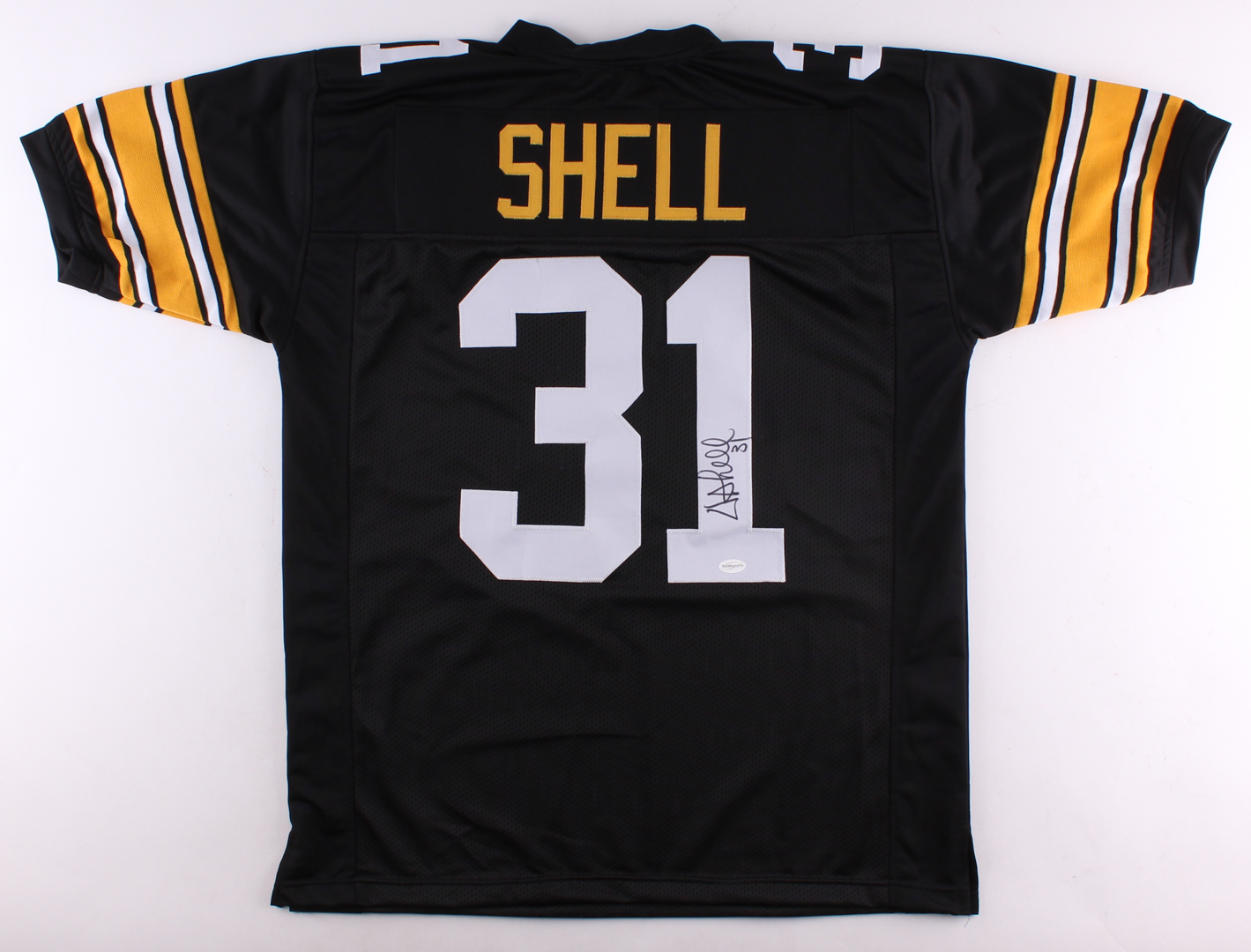 Custom on-field style jersey. Everything is sewn on, size XL. Hand-signed by Donnie Shell (HOF).