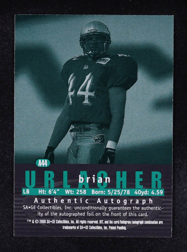 Brian Urlacher 2000 SAGE HIT Autographs #A44 RC