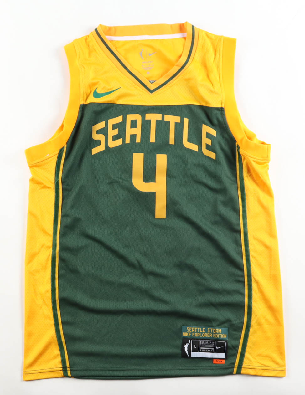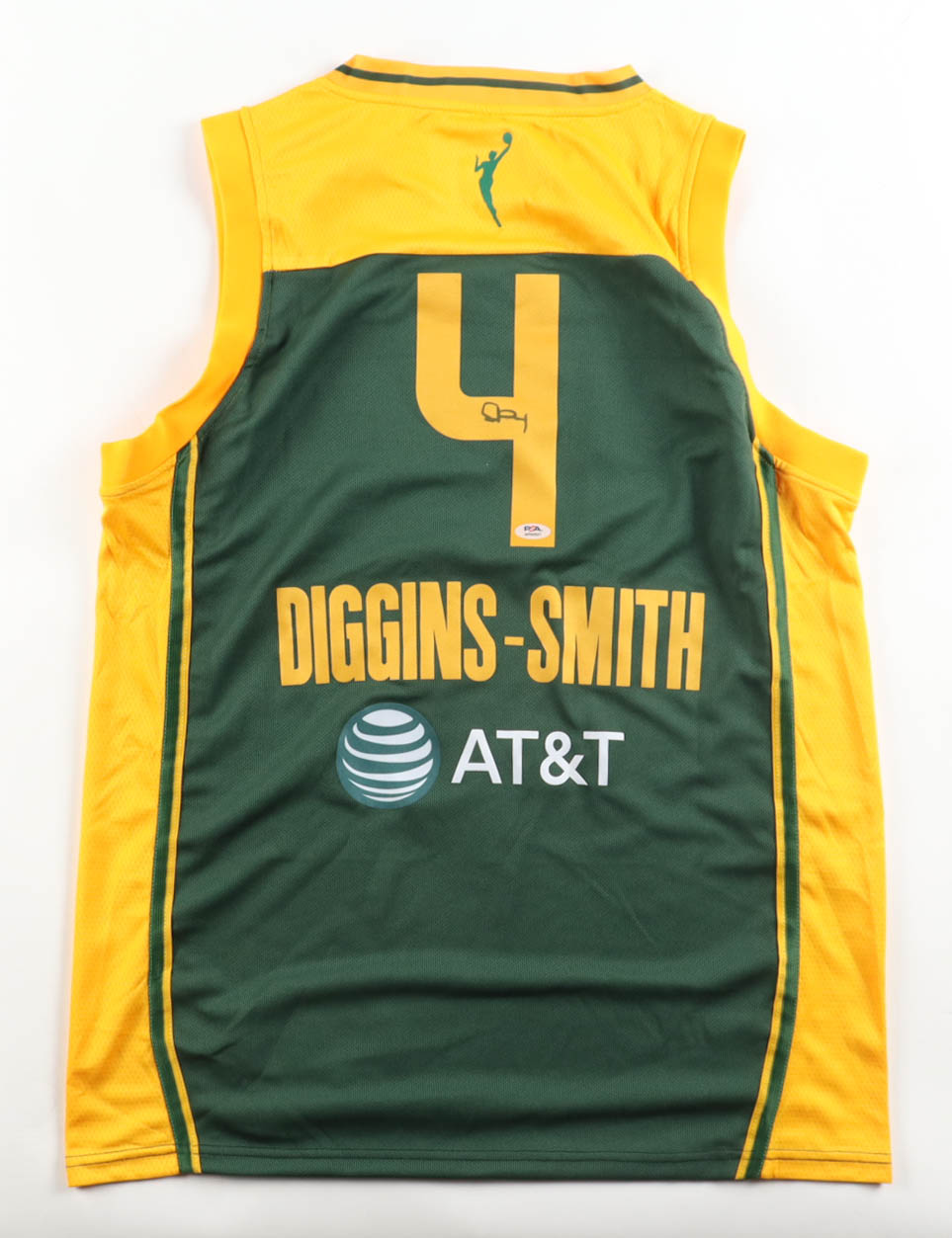 Nike jersey with everything pressed on, size L. Hand-signed by Skylar Diggins (Seattle Storm).