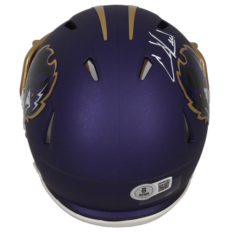 Riddell Baltimore Ravens alternate speed mini helmet has been hand-signed by Ed Reed (HOF).