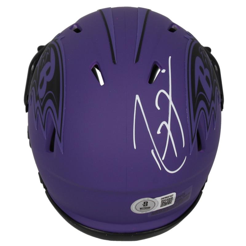 Riddell Baltimore Ravens rave alternate speed mini helmet. Hand-signed by Ray Lewis (HOF).