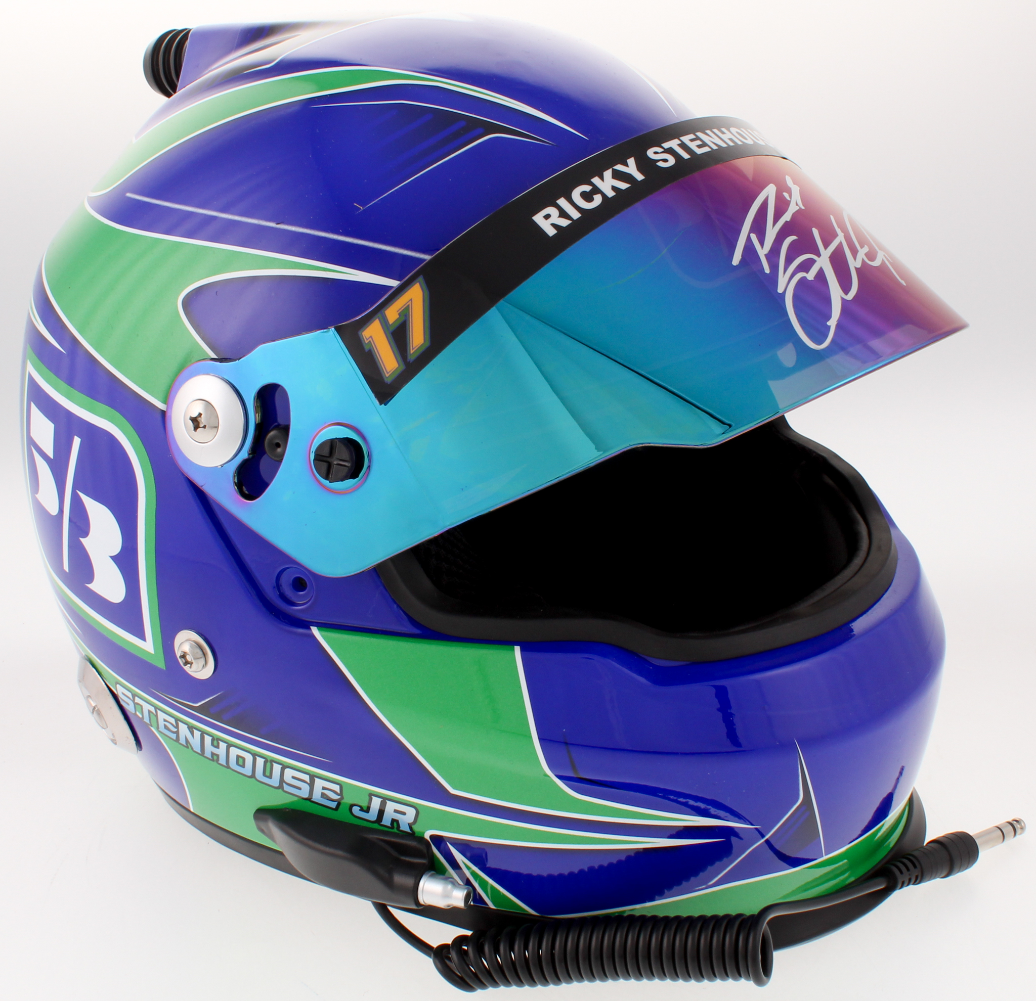 Full-size special edition replica NASCAR helmet hand-signed on the visor in silver paint pen by Ricky Stenhouse Jr.