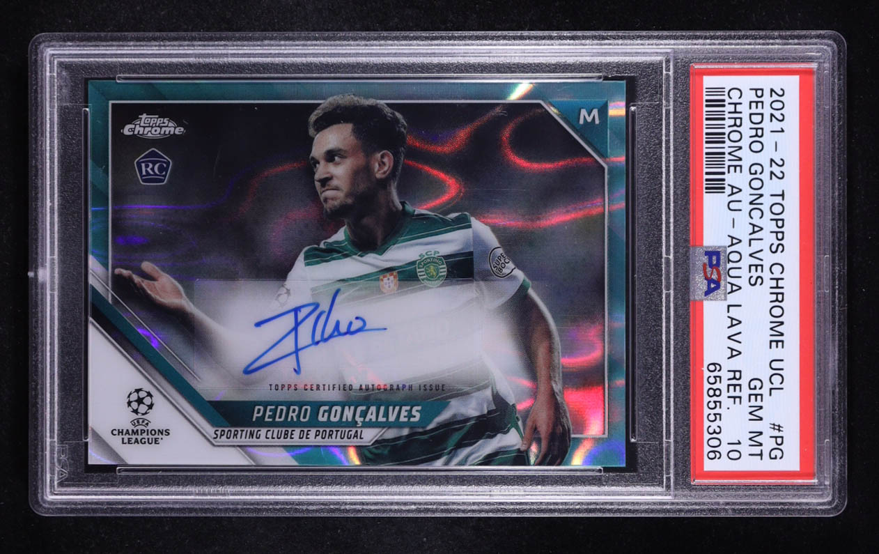 Pedro Goncalves 2021-22 Topps Chrome UEFA Champions League Autographs Aqua Lava Refractors #CAPG RC (PSA 10)