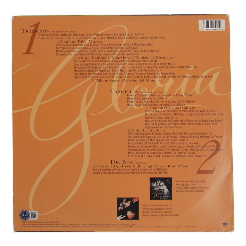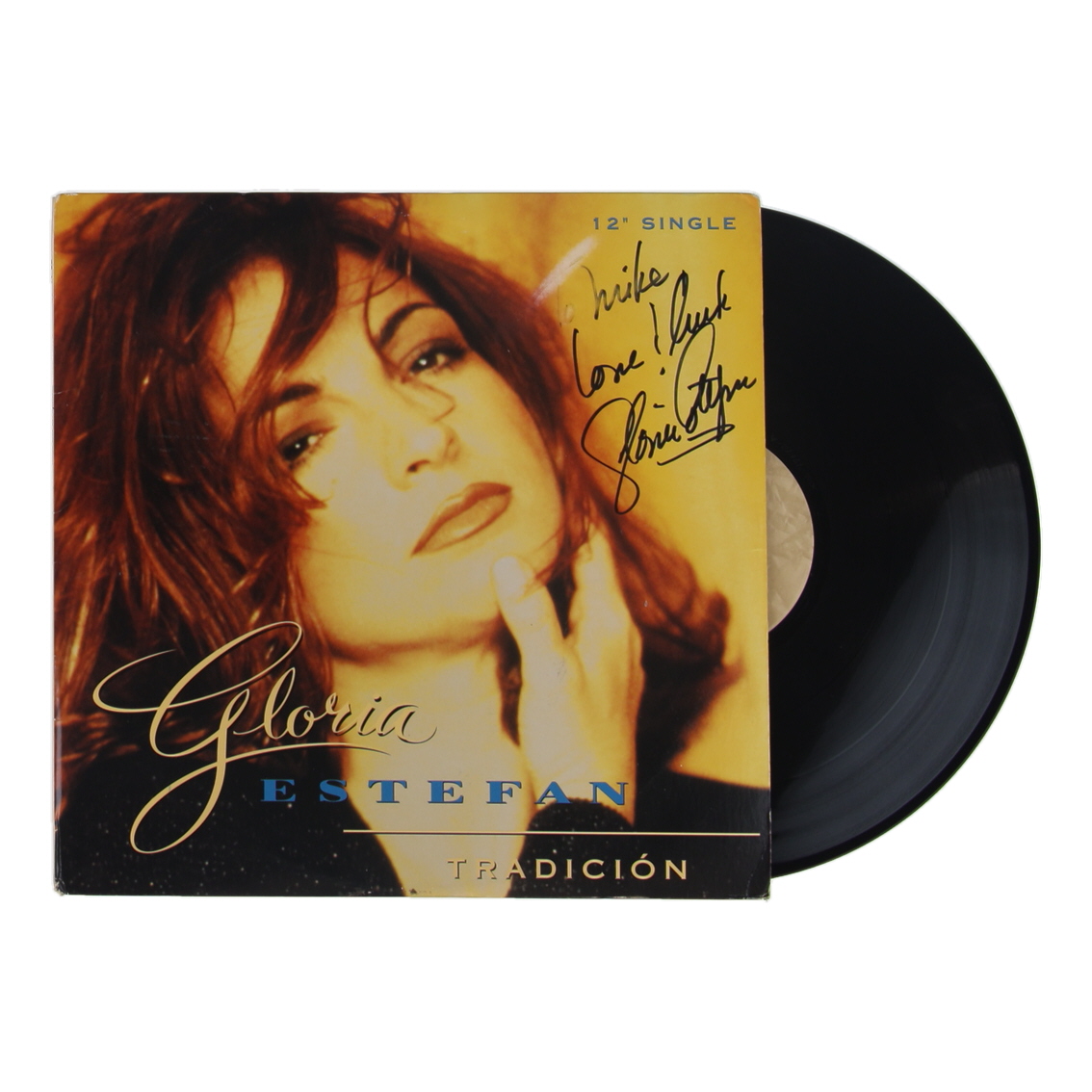 Gloria Estefan Signed "Tradicion" Vinyl Record Album Cover Inscribed "To Mike, Love & Luck" (Beckett)