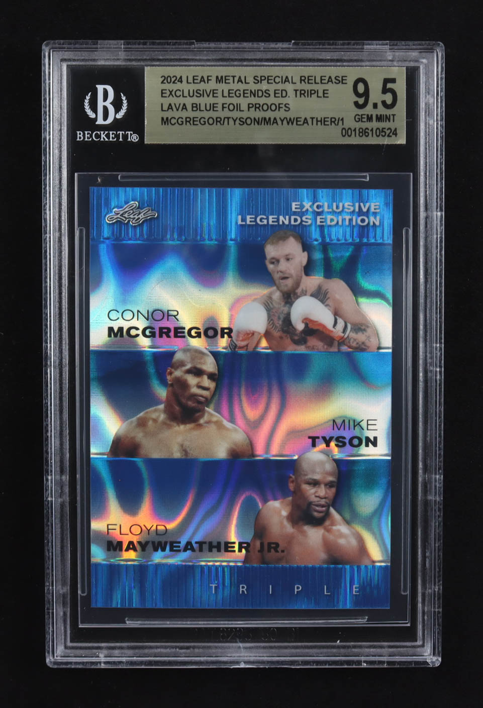 Conor Mcgregor / Mike Tyson / Floyd Mayweather Jr. 2024 Leaf Metal Special Release Exclusive Legends Ed. Triple Lava Blue Foil Proofs (BGS 9.5)