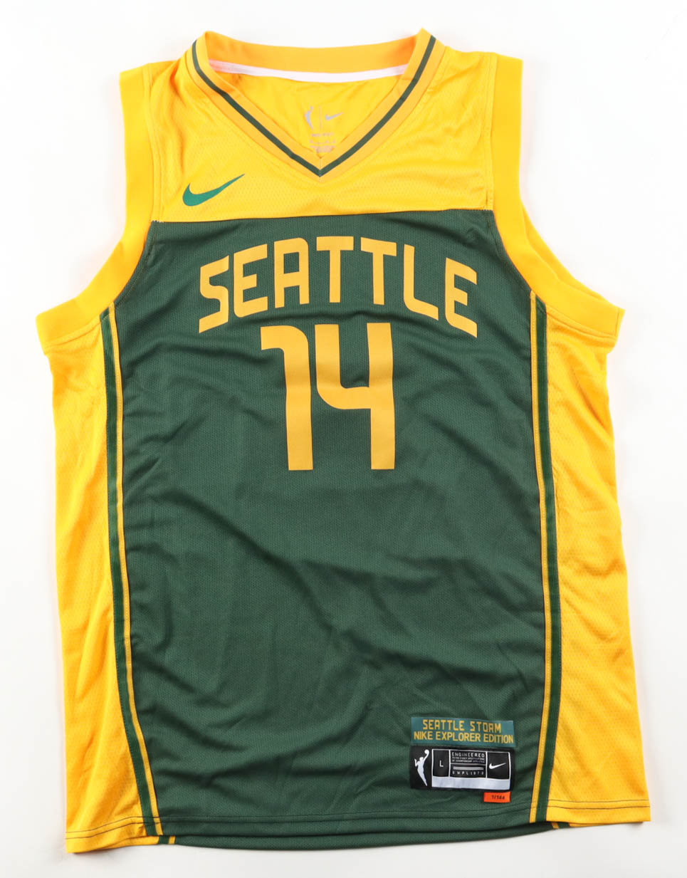 Nike authentic jersey with everything pressed on, size L. Hand-signed by Dominique Malonga (Seattle Storm).