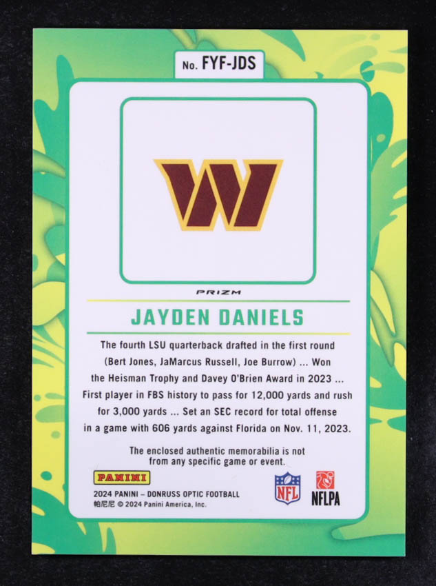Jayden Daniels 2024 Donruss Optic First Year Fresh Jerseys Blue Hyper #17 RC