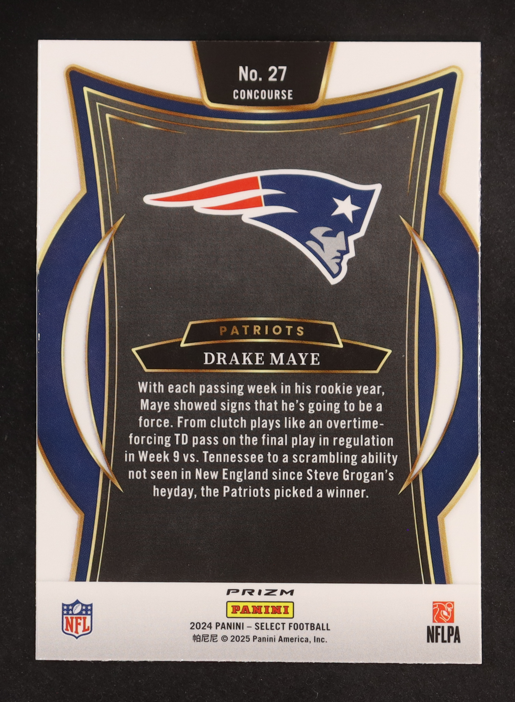 Drake Maye 2024 Select Prizm Black and Red Shock #27 RC