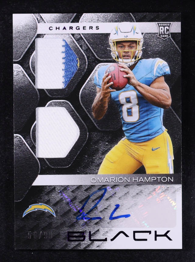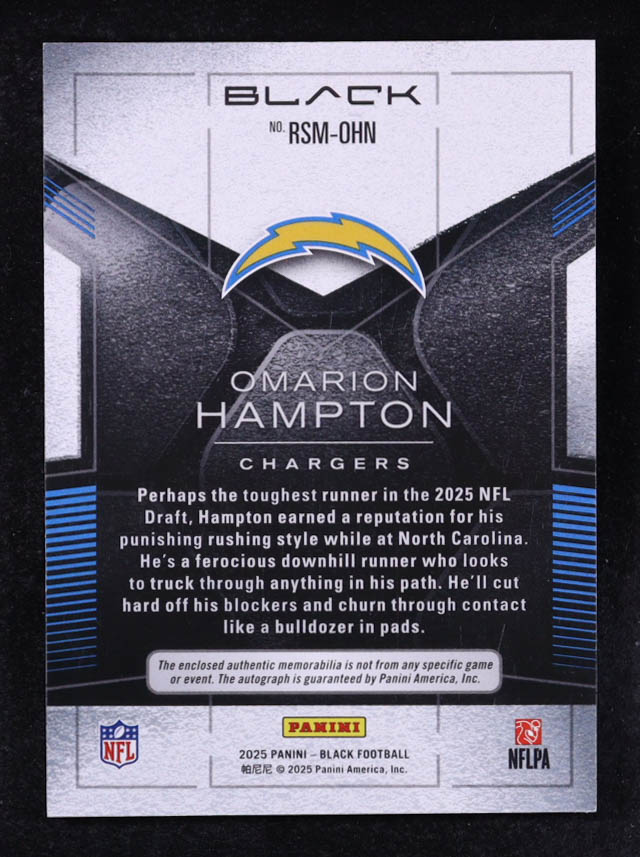 Omarion Hampton 2025 Panini Black Rookie Signature Materials Royal #23 RC #56/99
