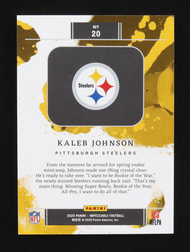 Kaleb Johnson 2025 Panini Impeccable Silver NFL Shield #20 #27/35 RC