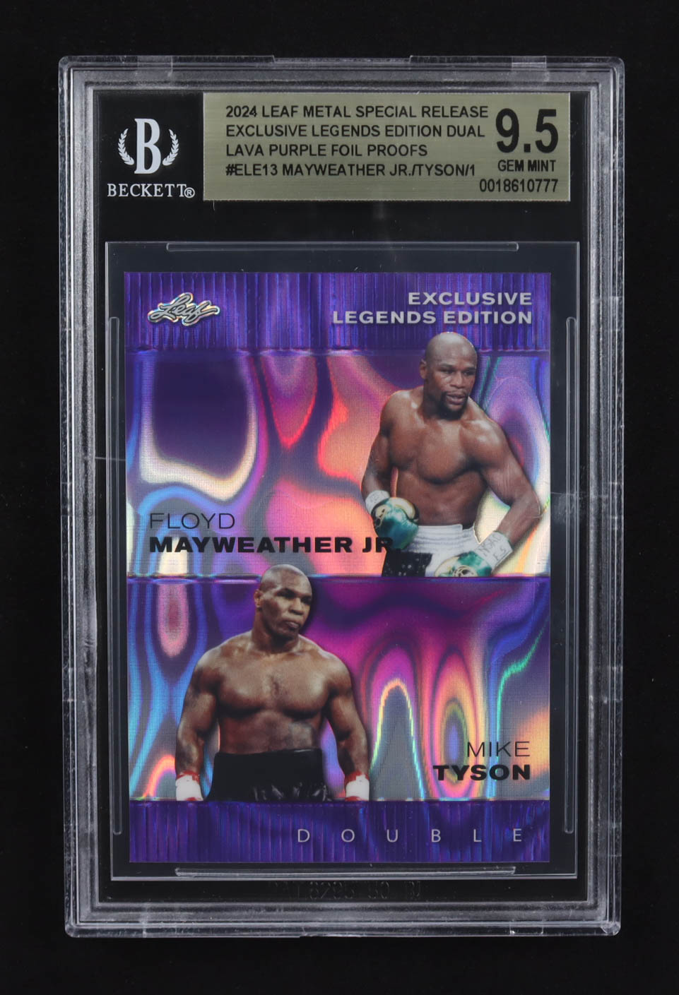 Mike Tyson / Floyd Mayweather Jr. 2024 Leaf Metal Special Release Exclusive Legends Ed. Dual Lava Purple Foil Proofs #ELE13 (BGS 9.5)