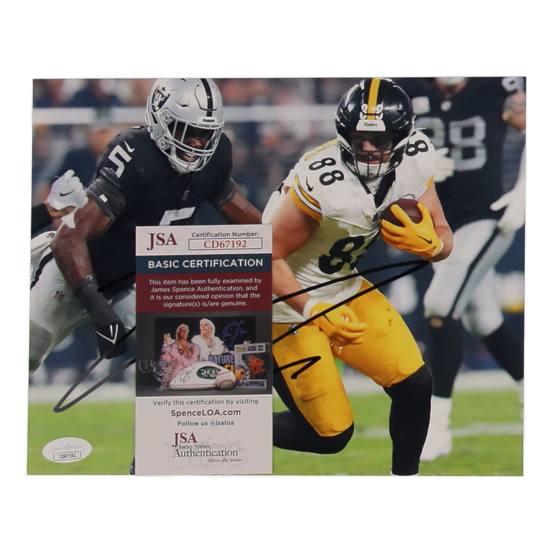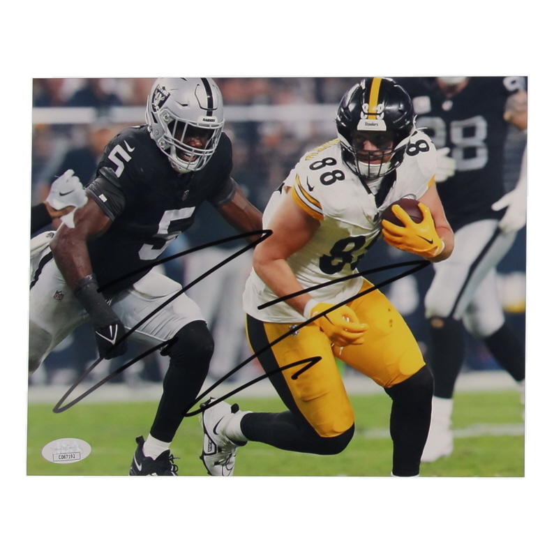 Photo measures 8" x 10" in size and has been hand-signed by Pat Freiermuth (Pittsburgh Steelers).