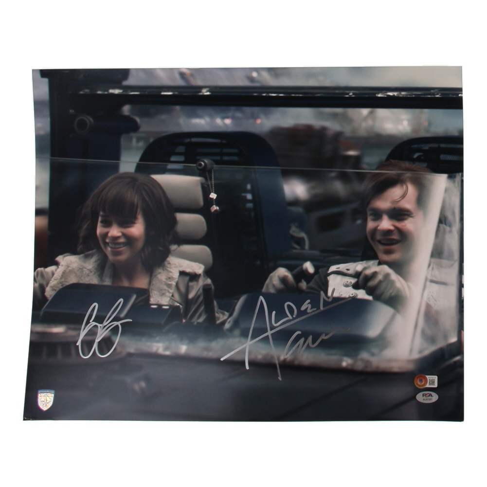 Photograph measures 16" x 20" in size and has been hand-signed by Alden Ehrenreich and Emilia Clarke.