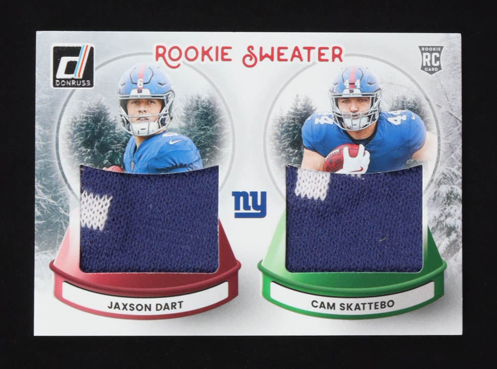 Cam Skattebo / Jaxson Dart 2025 Donruss Rookie Holiday Sweater Dual #3 RC