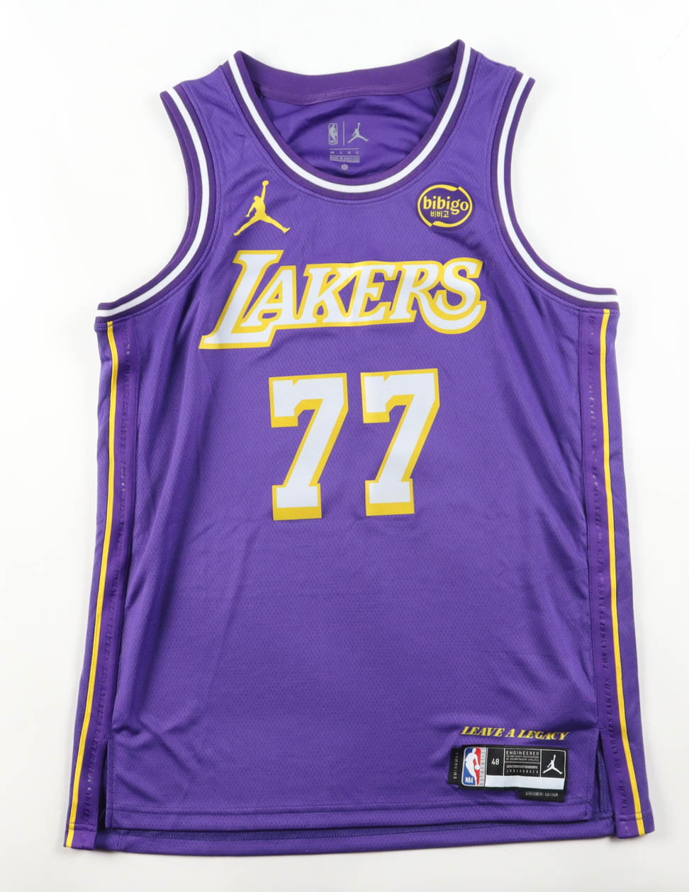 Jordan authentic jersey with everything pressed on, size 48. Hand-signed by Luka Doncic (Los Angeles Lakers).
