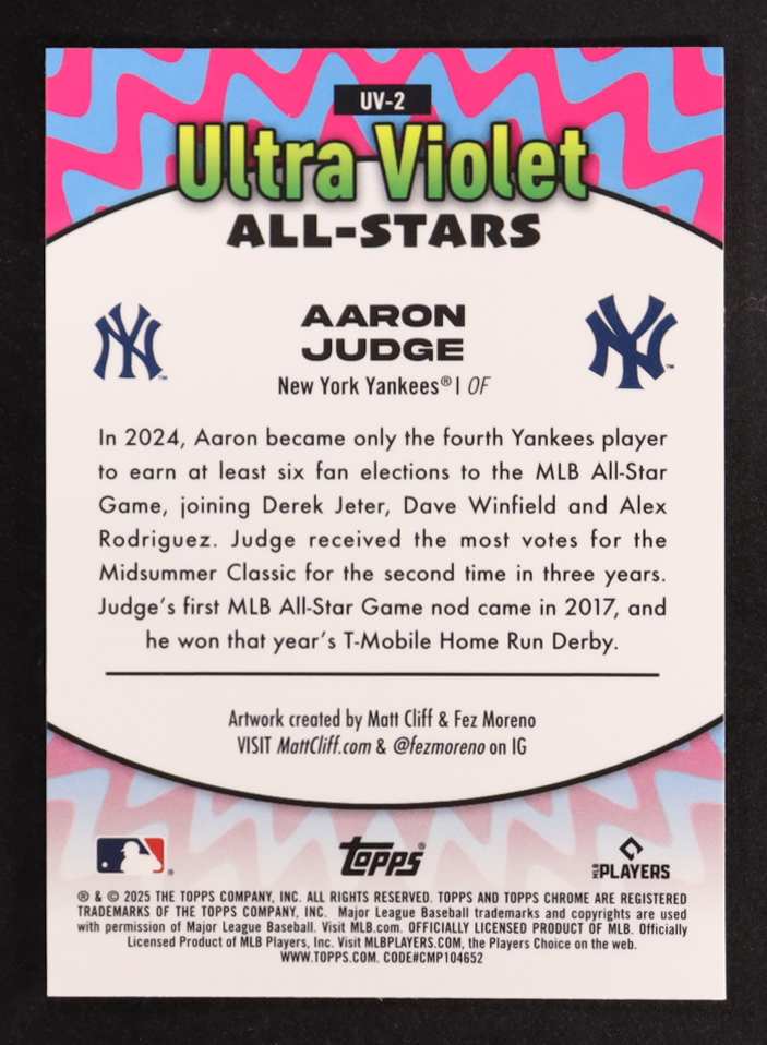 Aaron Judge 2025 Topps Chrome Ultra Violet All-Stars #UV2