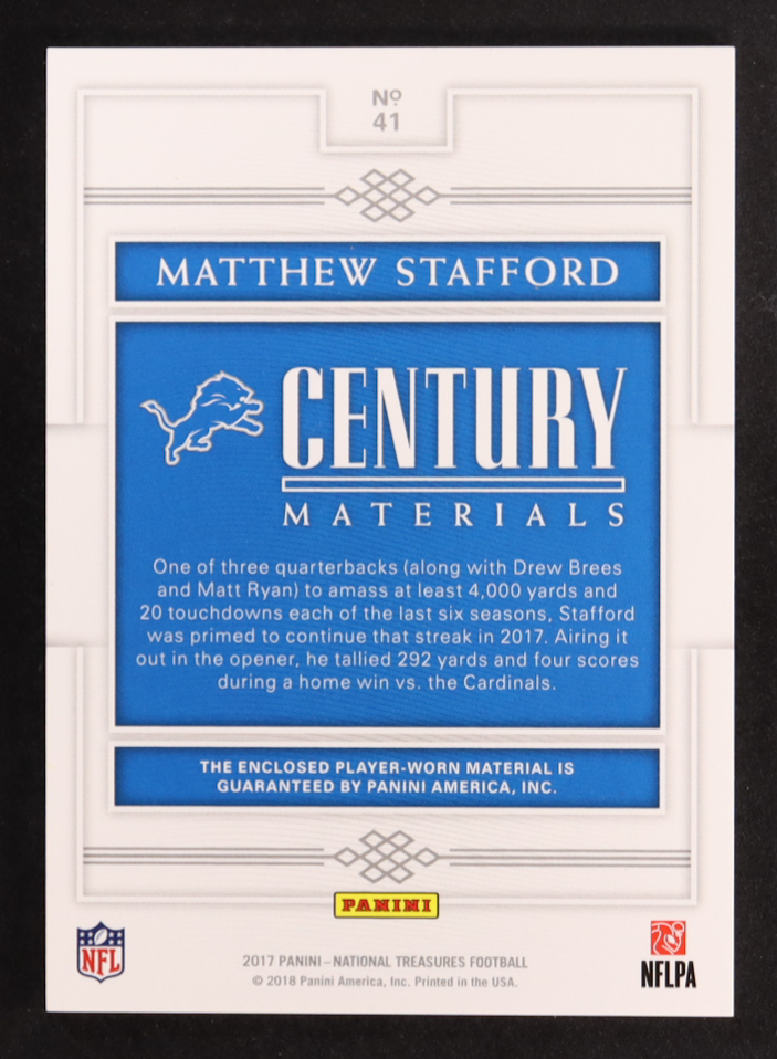 Matthew Stafford 2017 Panini National Treasures Century Materials #41 #41/49
