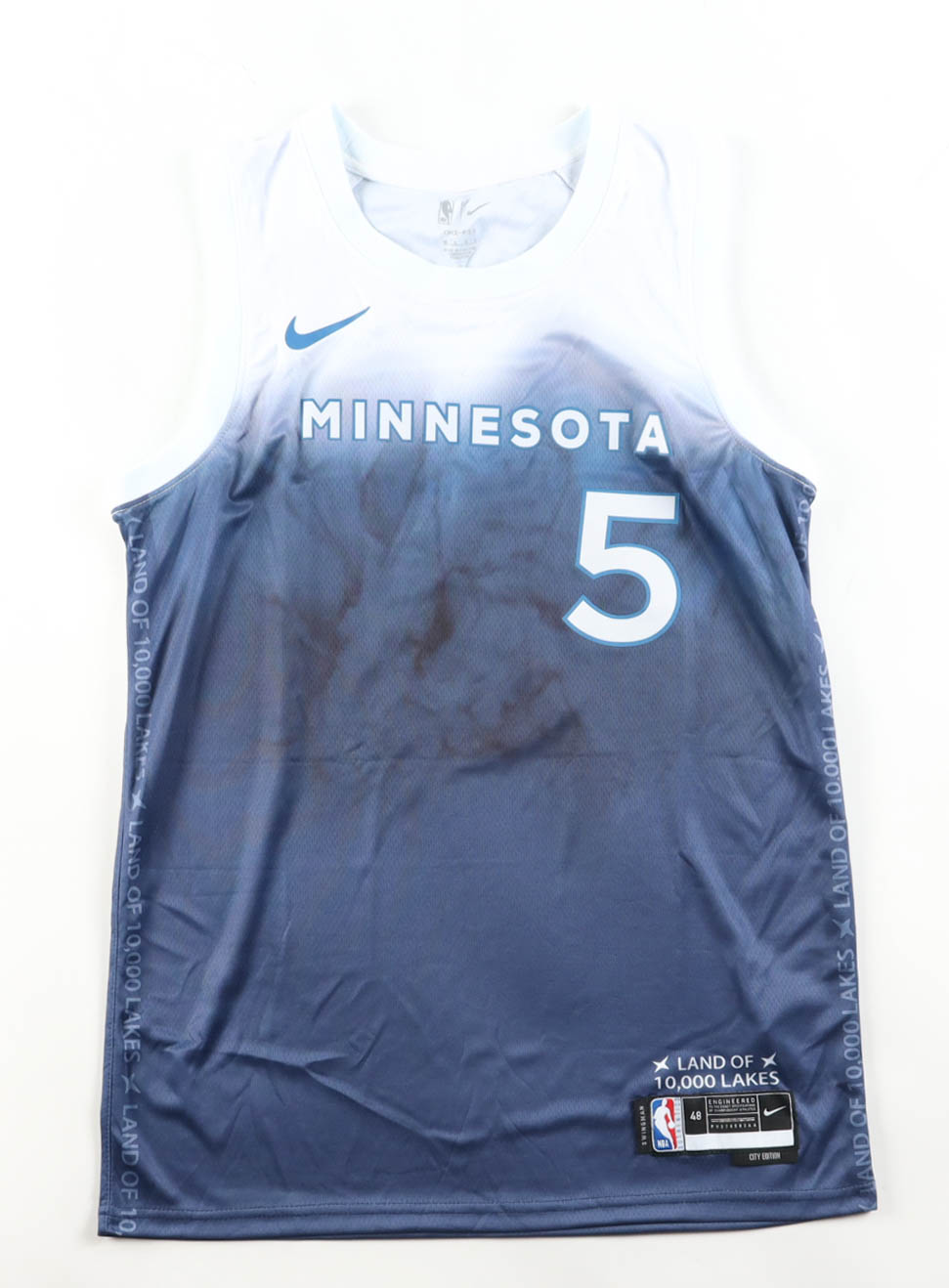 Nike authentic jersey with everything pressed on, size 48. Hand-signed by Anthony Edwards (Minnesota Timberwolves).