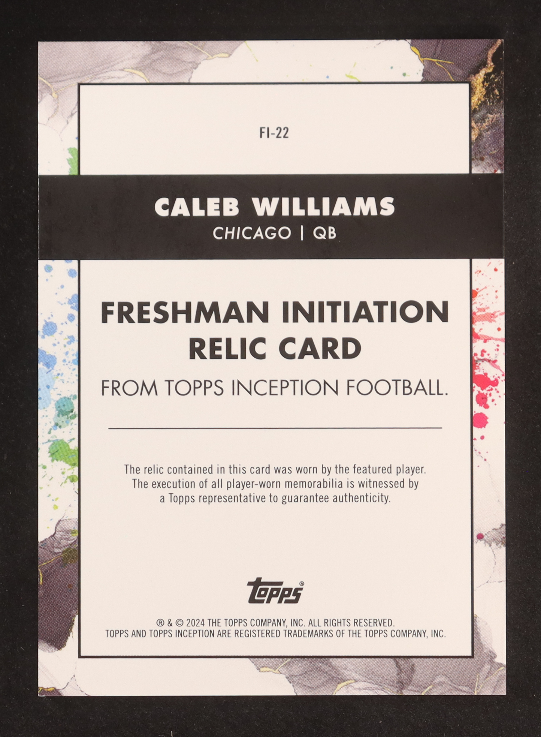 Caleb Williams 2024 Topps Inception Freshman Initiation Jerseys Red #FI22 #43/75 RC