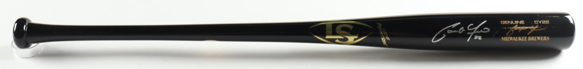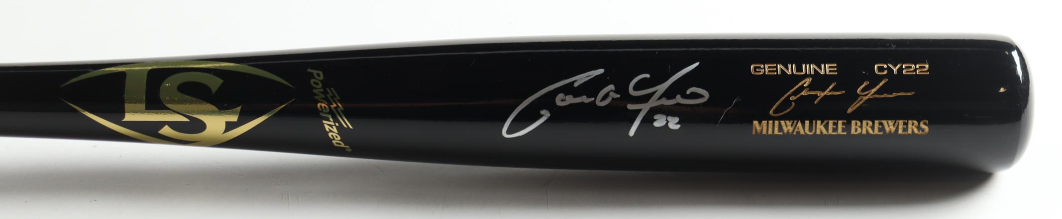 Louisville Slugger Milwaukee Brewers Genuine CY22 Player Model Baseball Bat has been hand-signed by Christian Yelich.