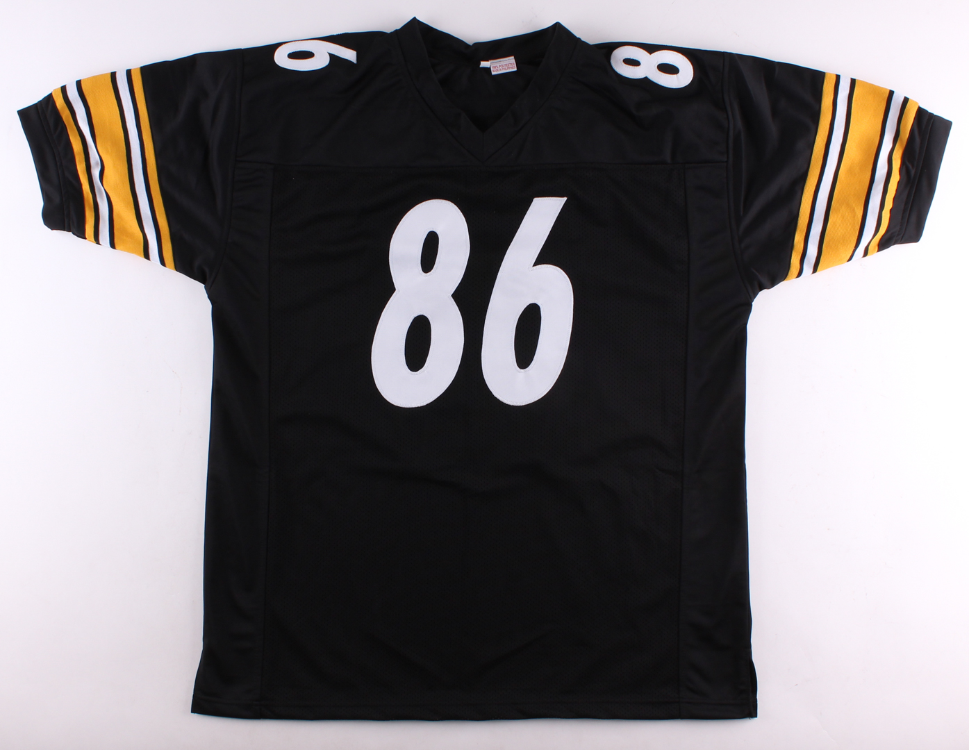 Custom on-field style jersey. Everything is sewn on, size XL. Hand-signed in black felt-tip pen by Hines Ward.