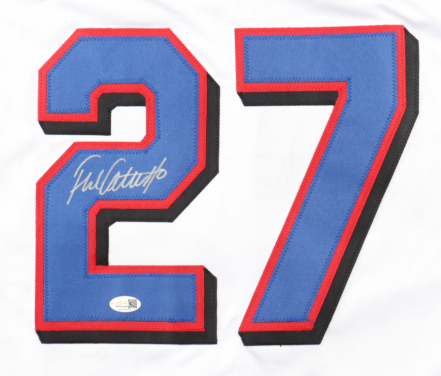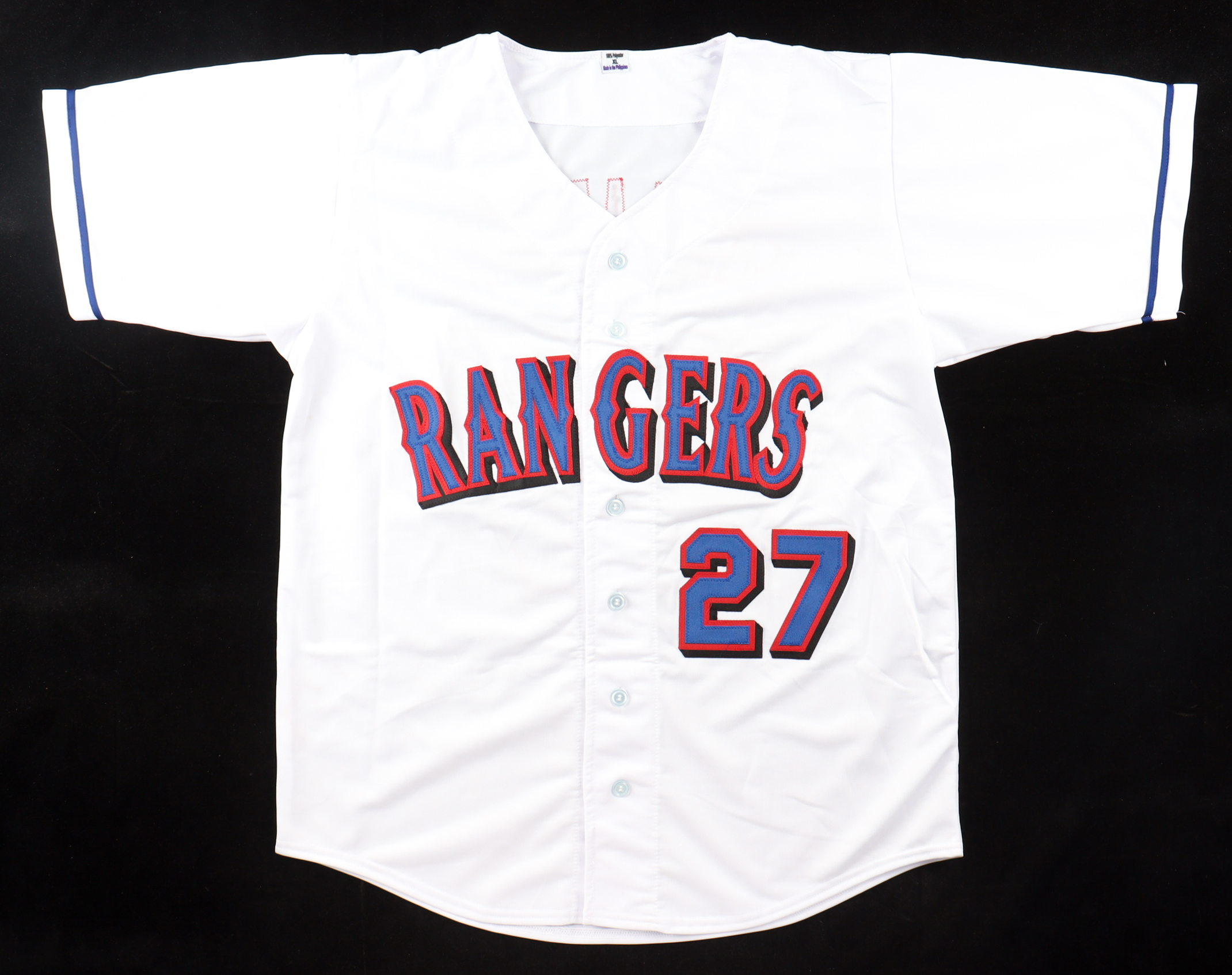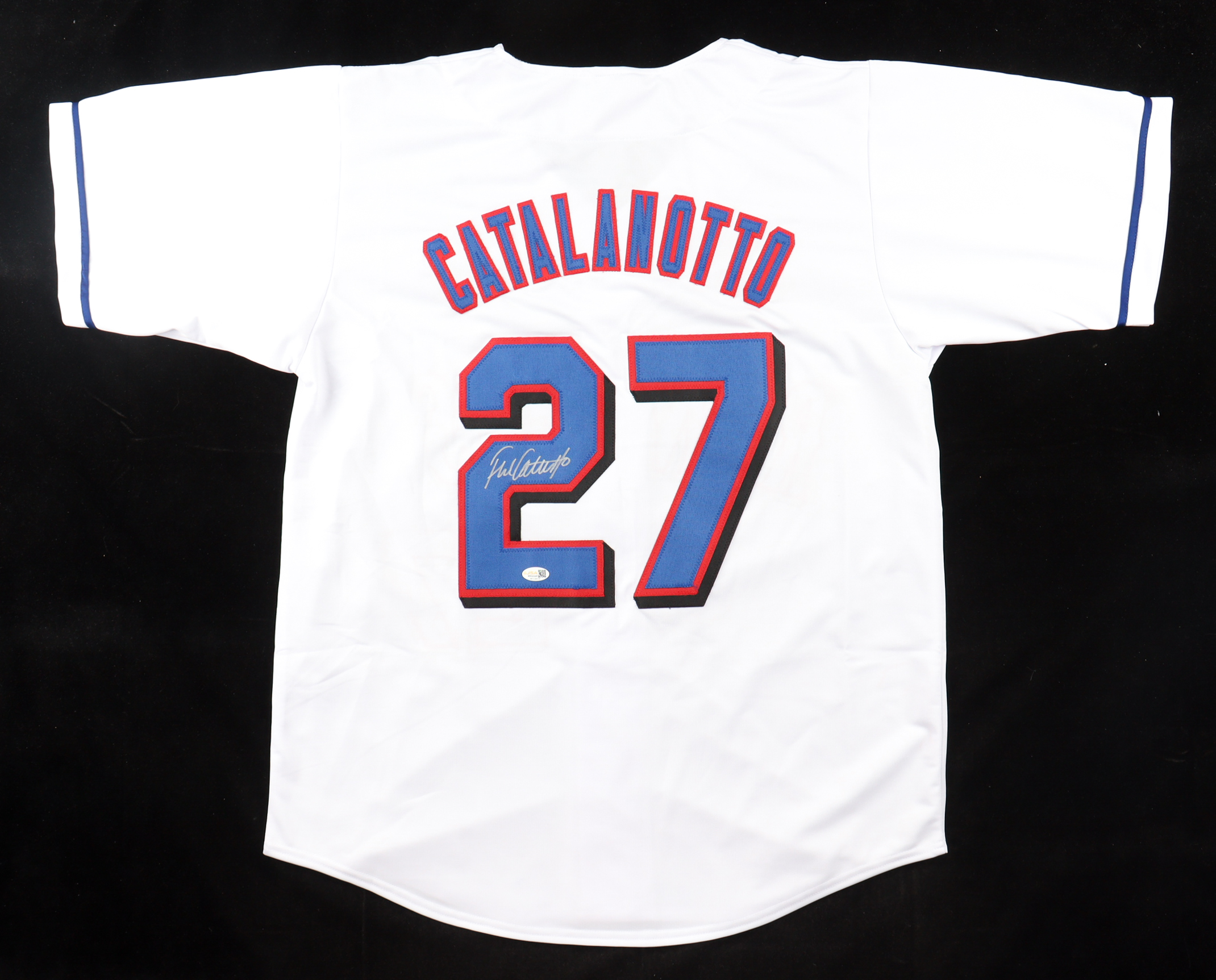Custom jersey with everything sewn on, size XL. Hand-signed by Frank Catalanotto (Texas Rangers).