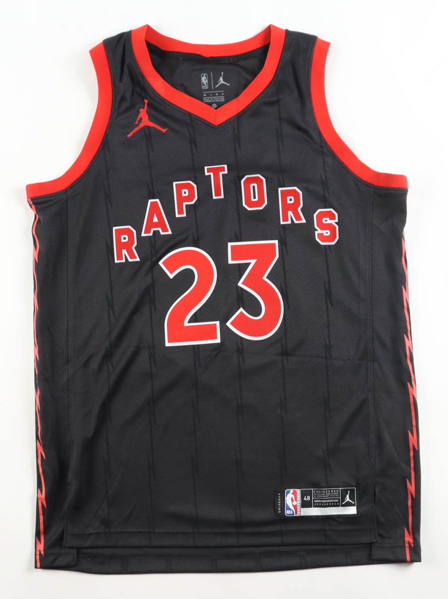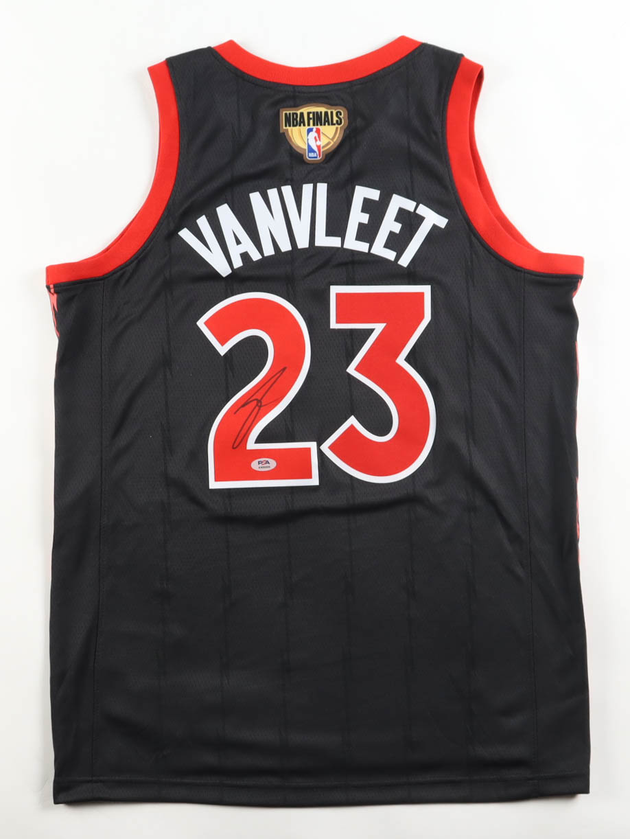 Jordan jersey. Everything is pressed on, size 48. Hand-signed by Fred VanVleet (Toronto Raptors).