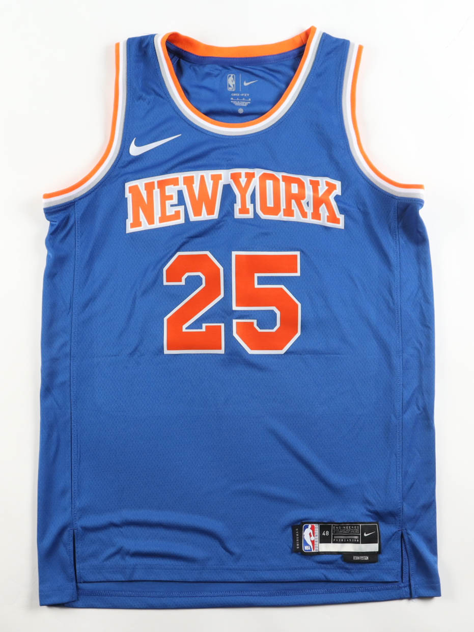 Nike authentic jersey with everything pressed on, size 48. Hand-signed by Mikal Bridges (New York Knicks).