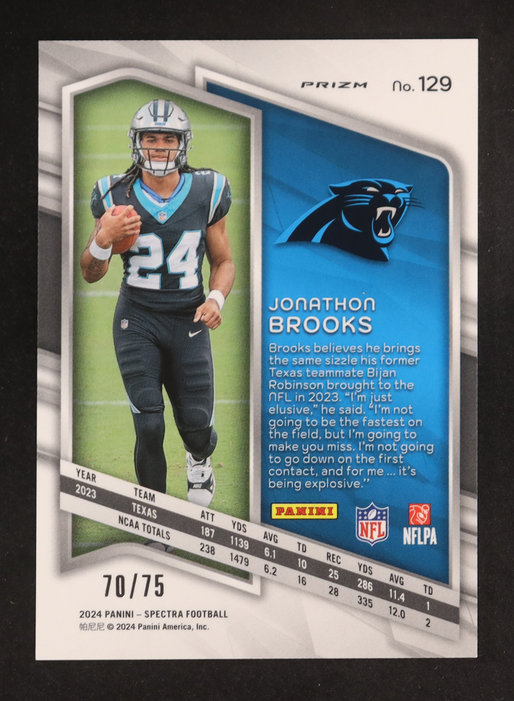 Jonathon Brooks 2024 Panini Spectra Hyper #129 #70/75 RC