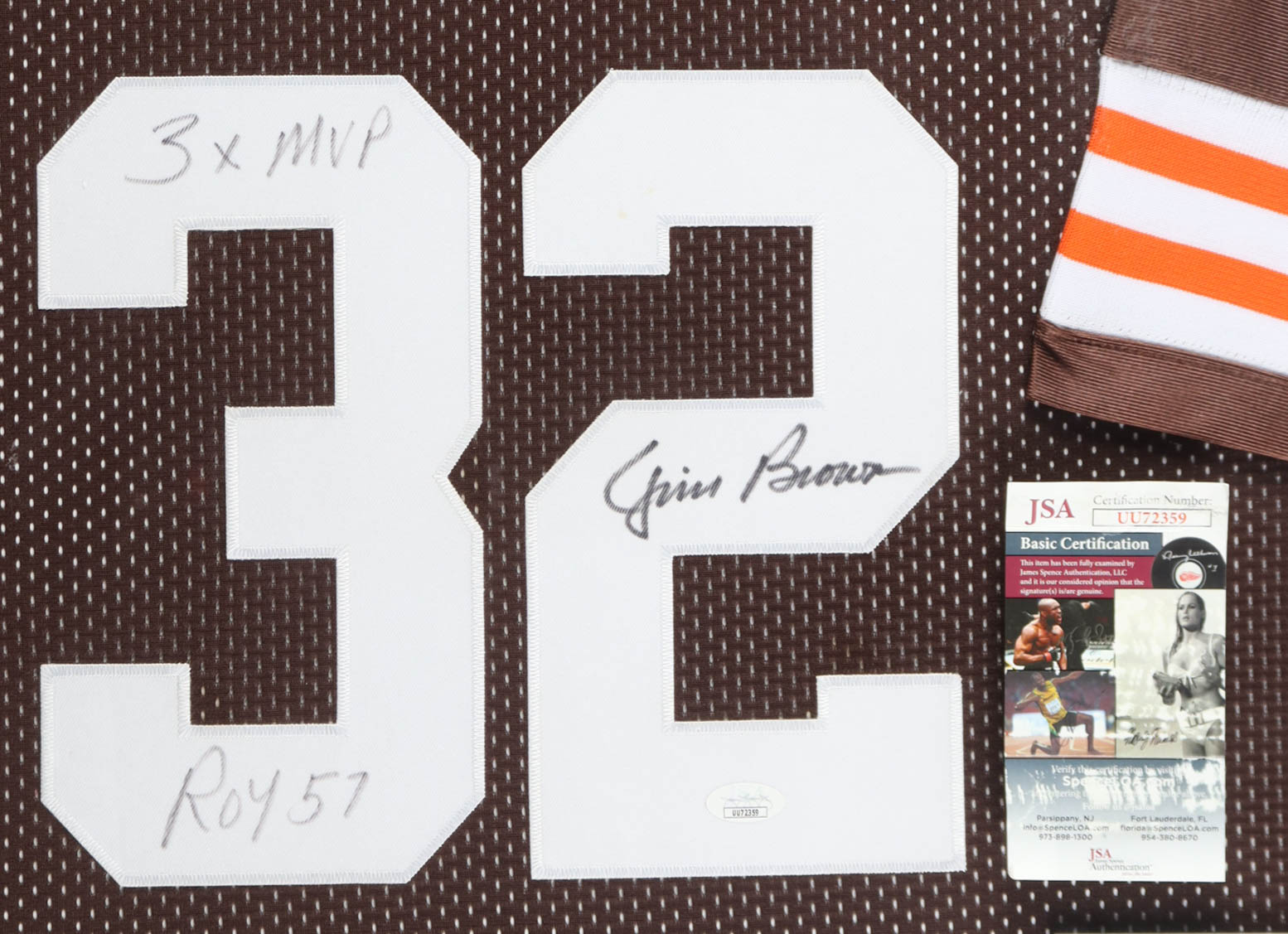 Jim Brown Signed Custom Framed Jersey Display Inscribed "3x MVP" & "ROY 57" (JSA)